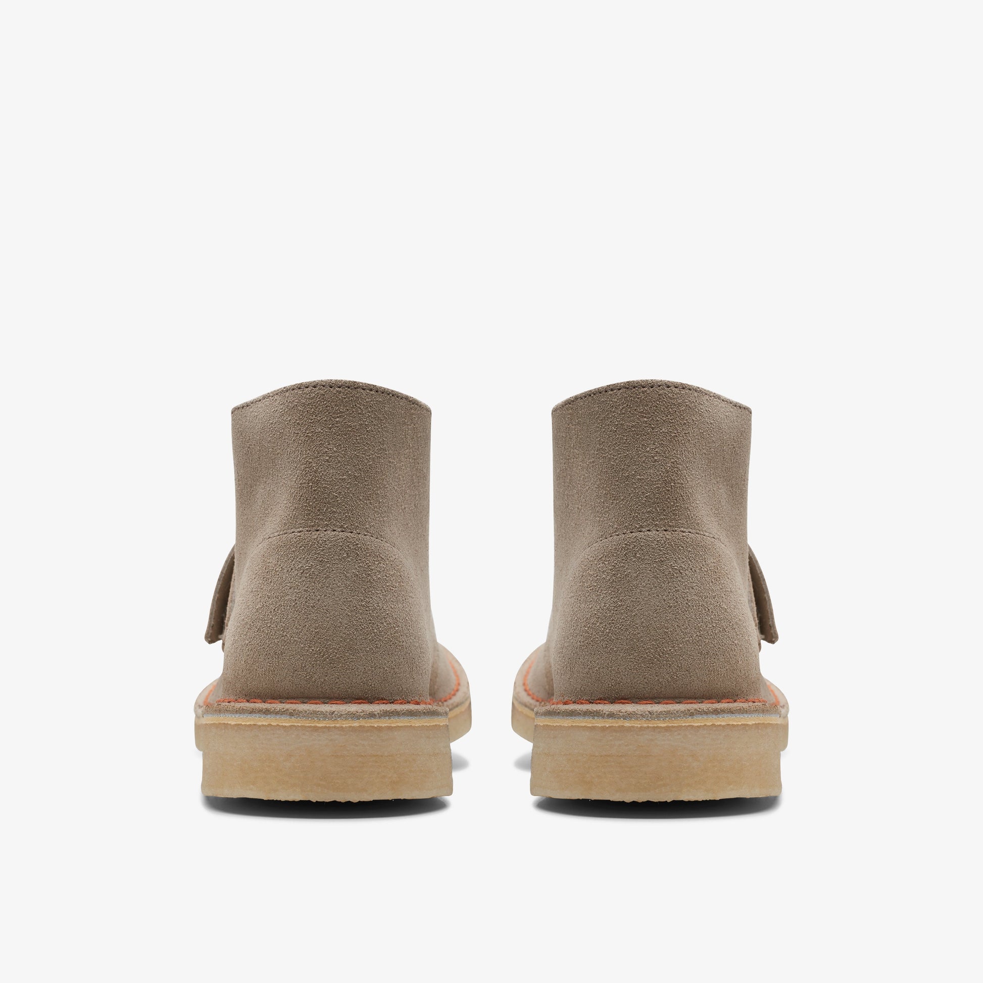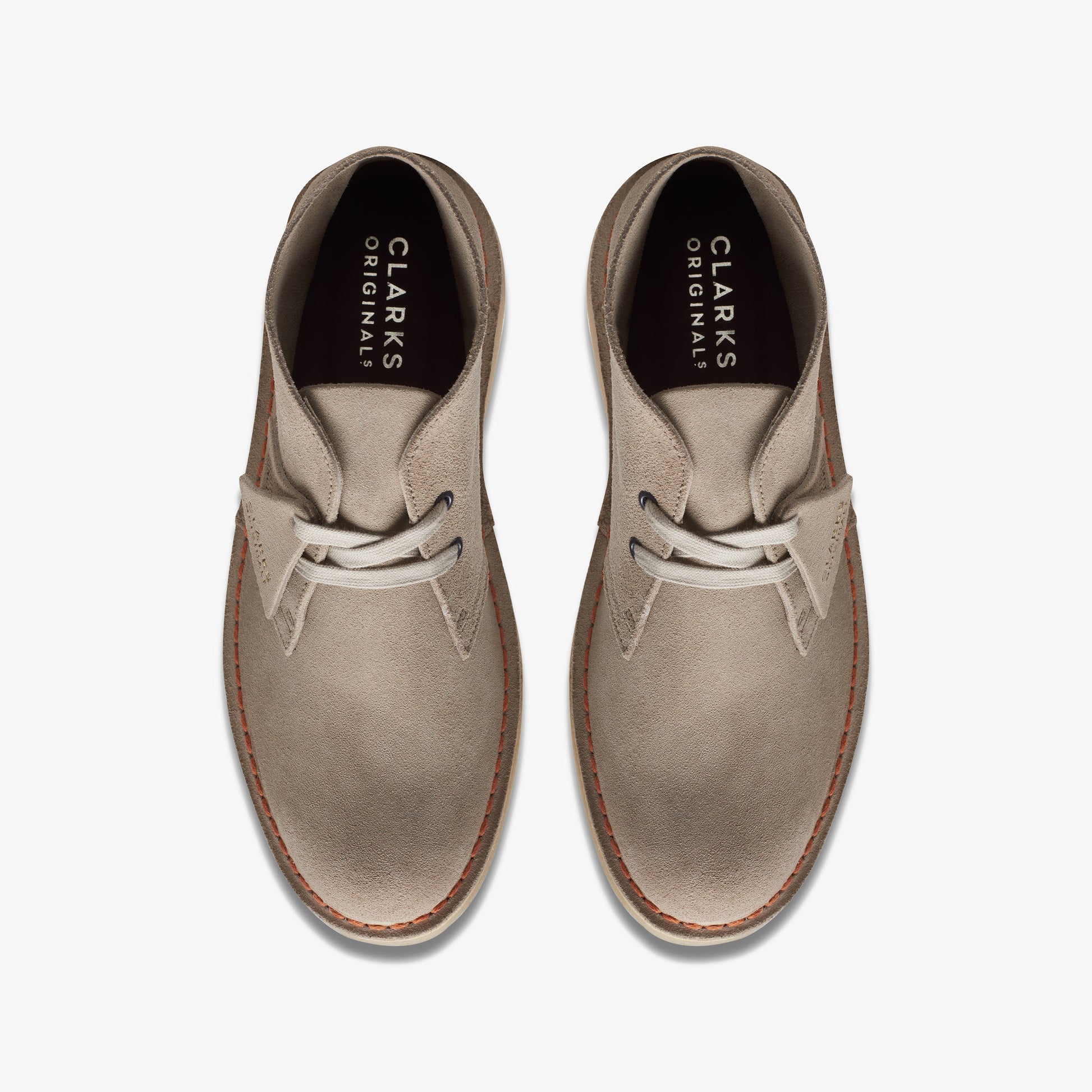 Stylish and versatile, the original Desert Boot from Clarks launched in 1950 by Nathan Clark and was inspired by a rough boot from Cairo's Old Bazaar. An instant hit, it became the footwear of choice for off-duty army officers. Sand suede is teamed with an unfussy lace fastening and our signature crepe sole.