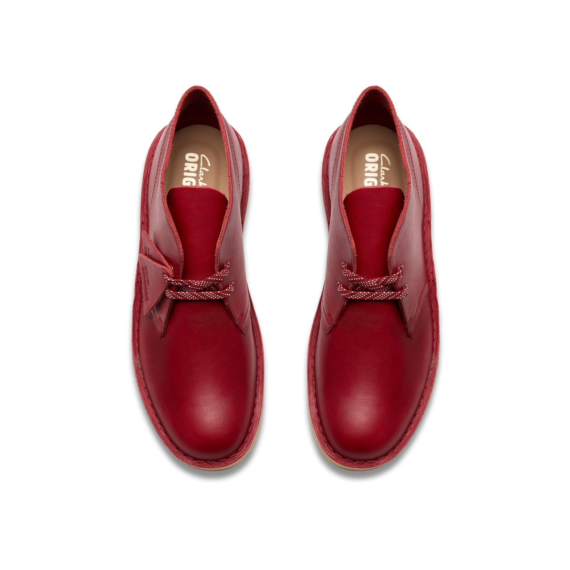 Cultural cachet and design DNA: no shoe is quite like the Clarks Originals Desert Boot. Born in the '50s, its minimal, progressive style sparked a worldwide footwear revolution – worn by beatniks, mods, Britpop bands, and Jamaican rude boys. And every design detail today remains true to that first pioneering pair. Here, the boot’s crafted, clean lines are enhanced with premium dark red leather and finished with an unfussy lace fastening. The authentic crepe sole completes this distinctive silhouette. Instantly recognizable, forever iconic. A true original.